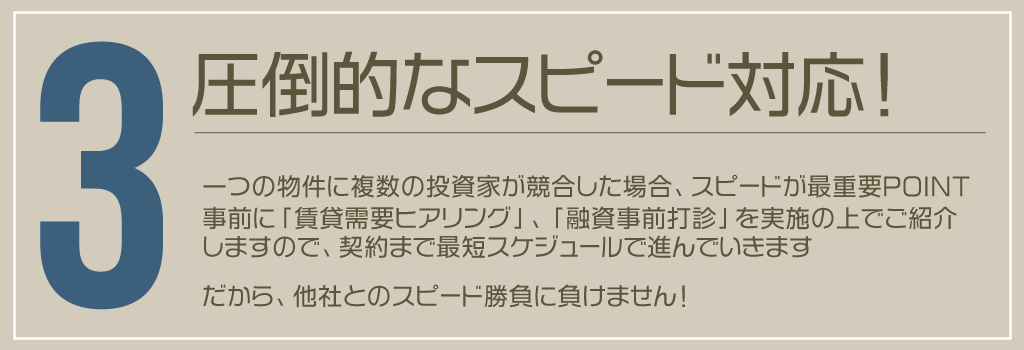 驚くほど高い利回り物件でも、賃貸需要がないエリアの物件はお客様にご紹介しておりません。